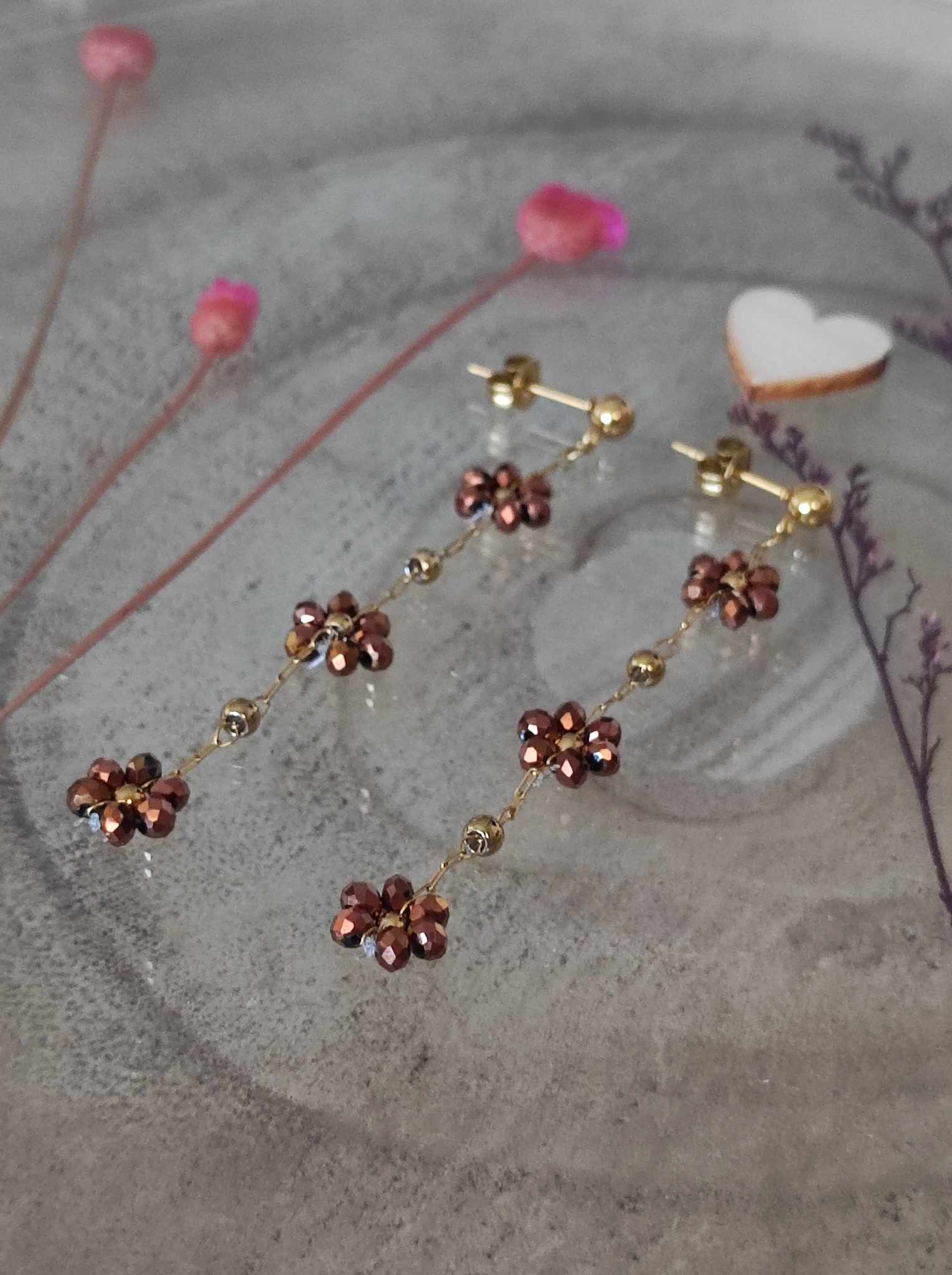 Petites fleurs tissées à la main avec perles à facettes