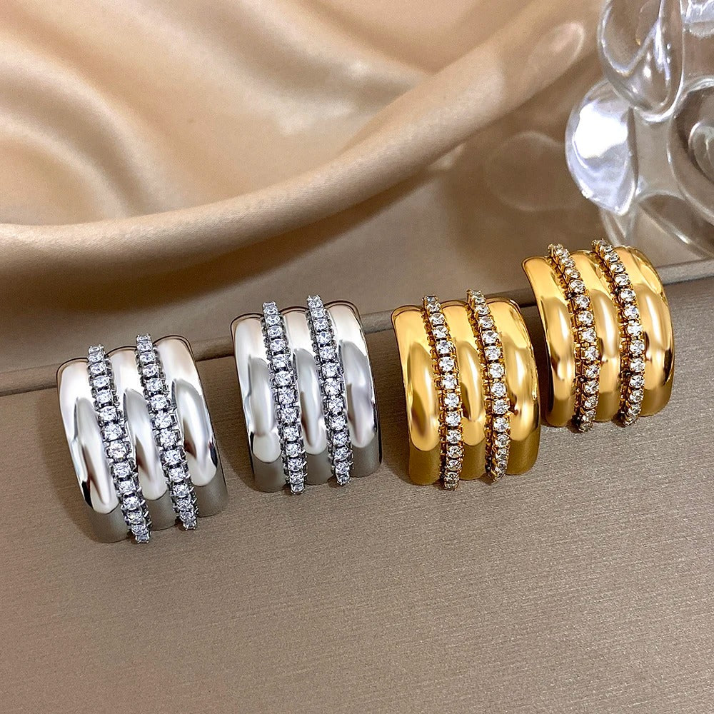 Sublimez chaque tenue avec les Boucles Lunéria, un modèle à la fois moderne et lumineux. Leur design sculptural, composé de courbes généreuses rehaussées de deux lignes de zircons étincelants, offre un équilibre parfait entre audace et raffinement.