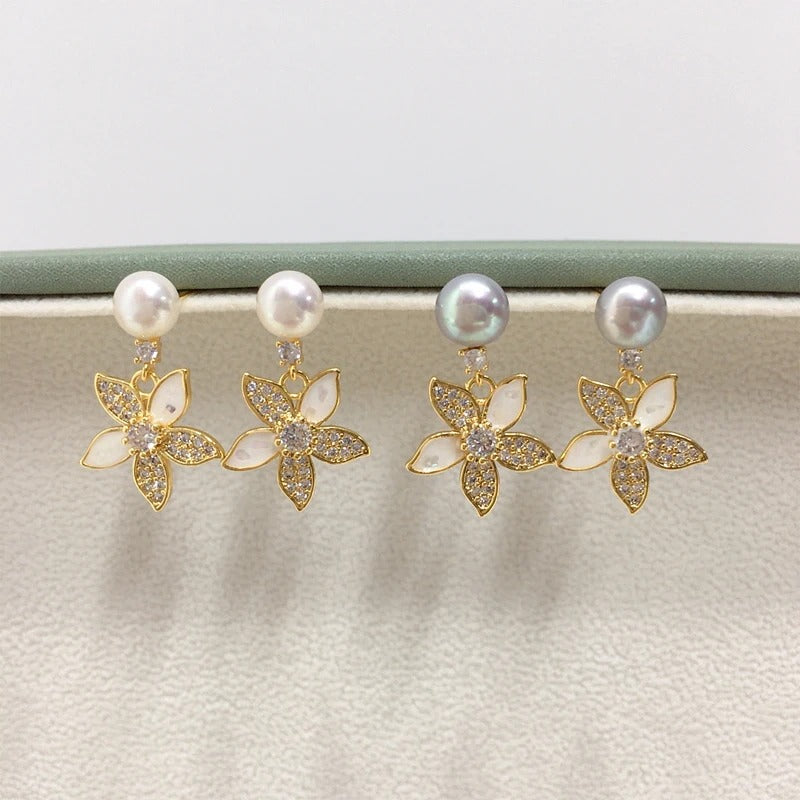 Surmontées d’une perle élégante, elles dévoilent une fleur scintillante sertie de zircons, subtilement travaillée pour capter la lumière à chaque mouvement.