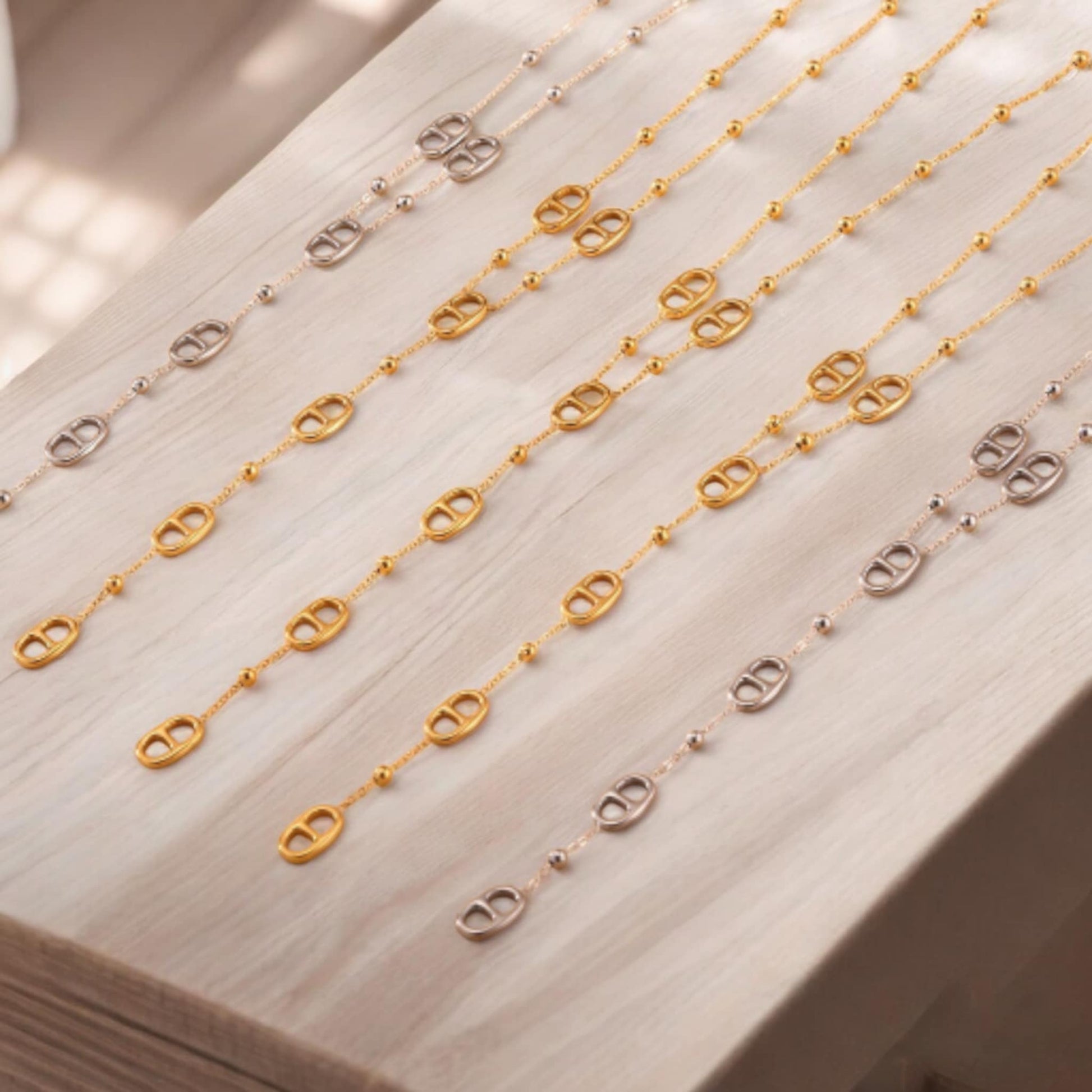 Le collier Élindora sublime le décolleté avec sa ligne élancée et ses maillons délicatement travaillés. Sa silhouette épurée et lumineuse apporte une touche chic et contemporaine à toutes les tenues, du quotidien aux soirées.