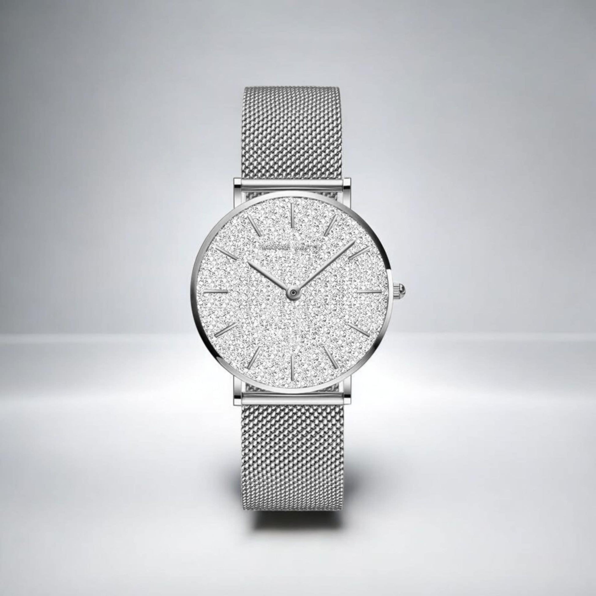 La montre Astréline brille par son élégance délicate et son cadran entièrement texturé façon éclats scintillants. Un modèle raffiné, minimaliste et résolument féminin, parfait pour illuminer chaque tenue - du quotidien aux soirées.