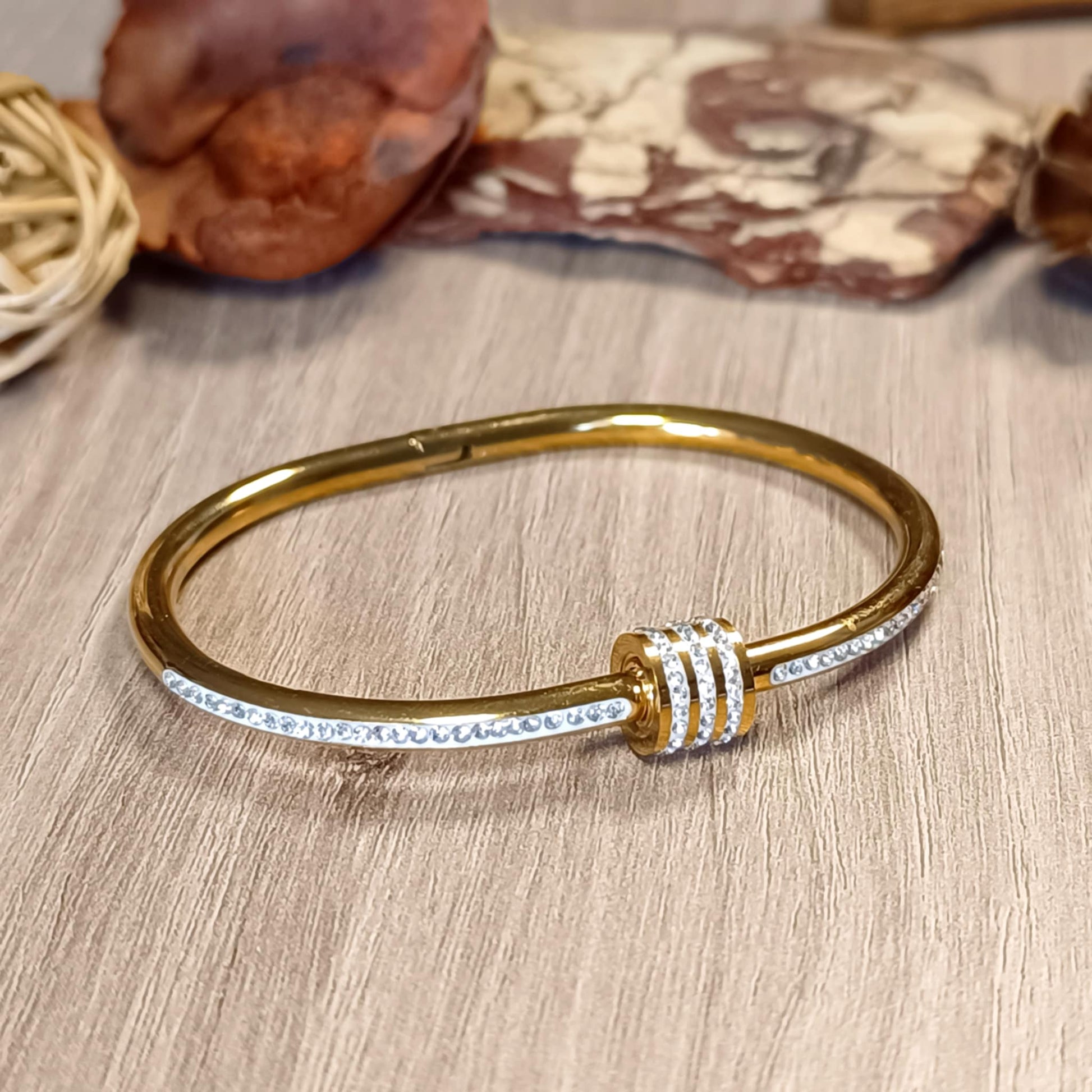 Épuré, lumineux et résolument élégant, le bracelet Harmonie séduit par ses lignes nettes et ses détails délicatement sertis de zircons. Un jonc intemporel, facile à porter au quotidien comme lors des grandes occasions, seul ou en accumulation.
