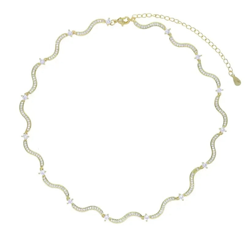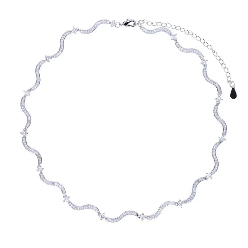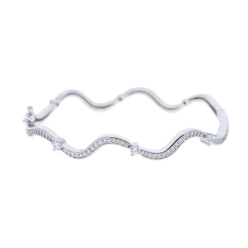 Chaque bijou scintille d’un jeu de vagues pavées de zircons, symbole d’harmonie et de lumière.