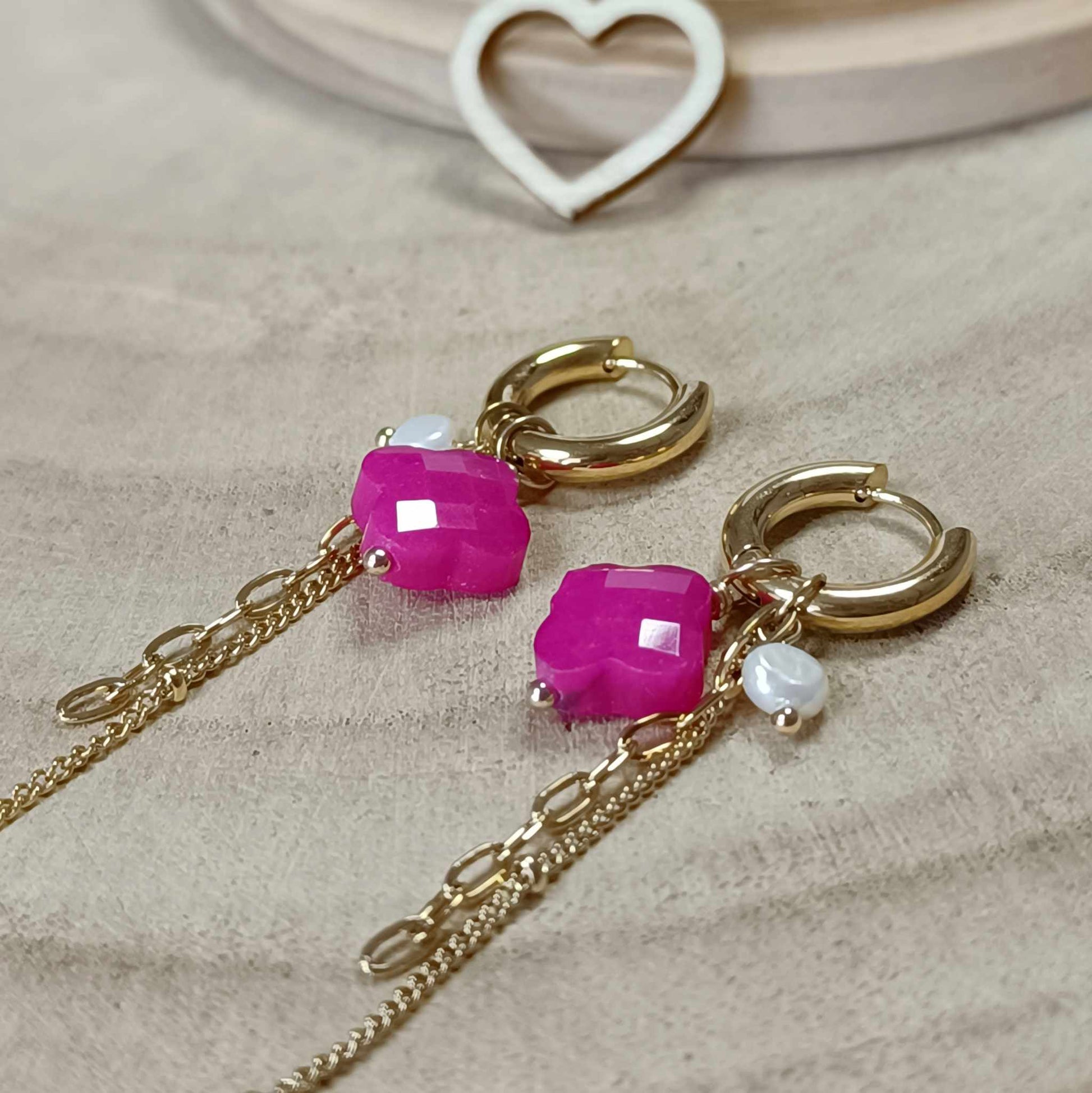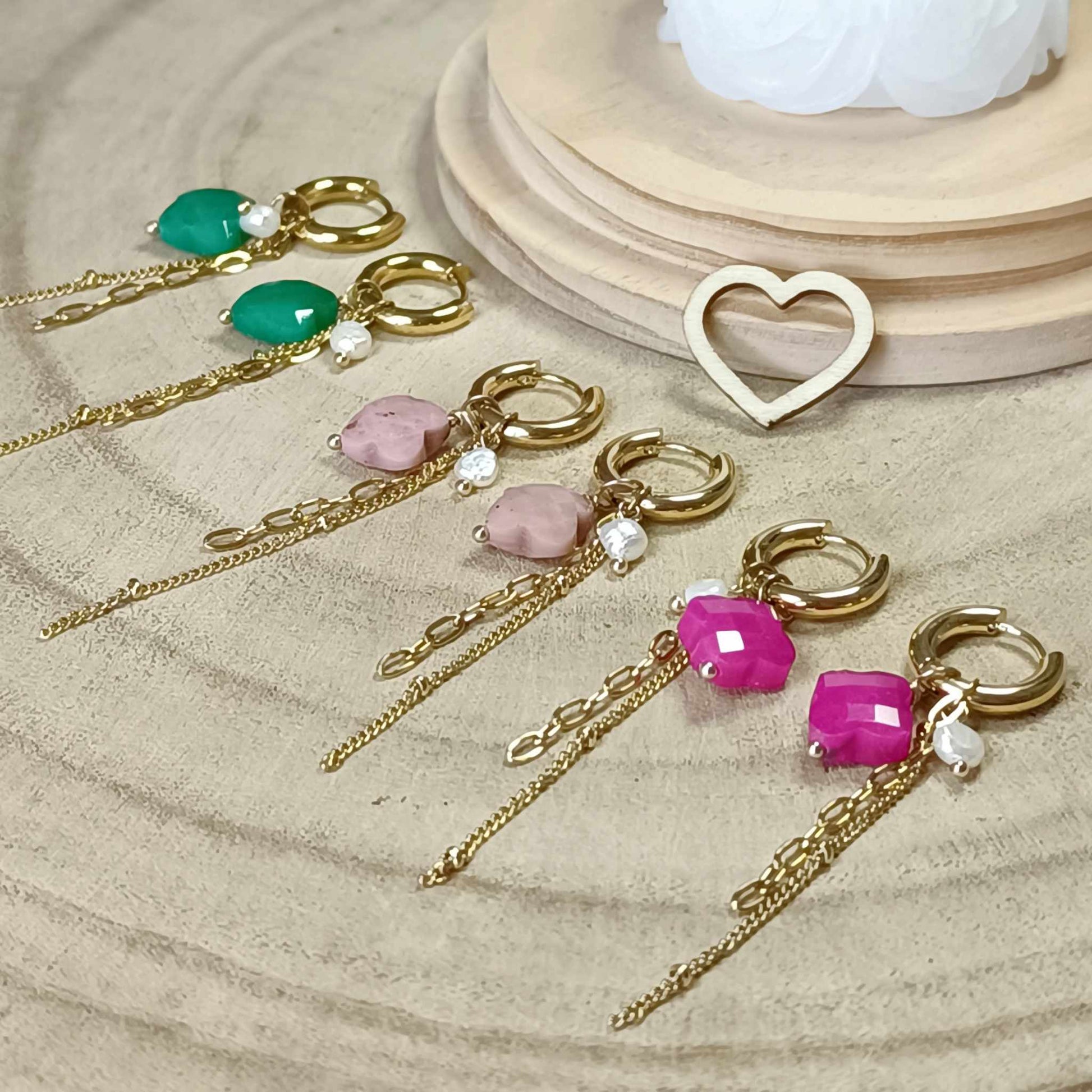 Matériaux : Acier Inoxydable et pierre rhodochrosite.
