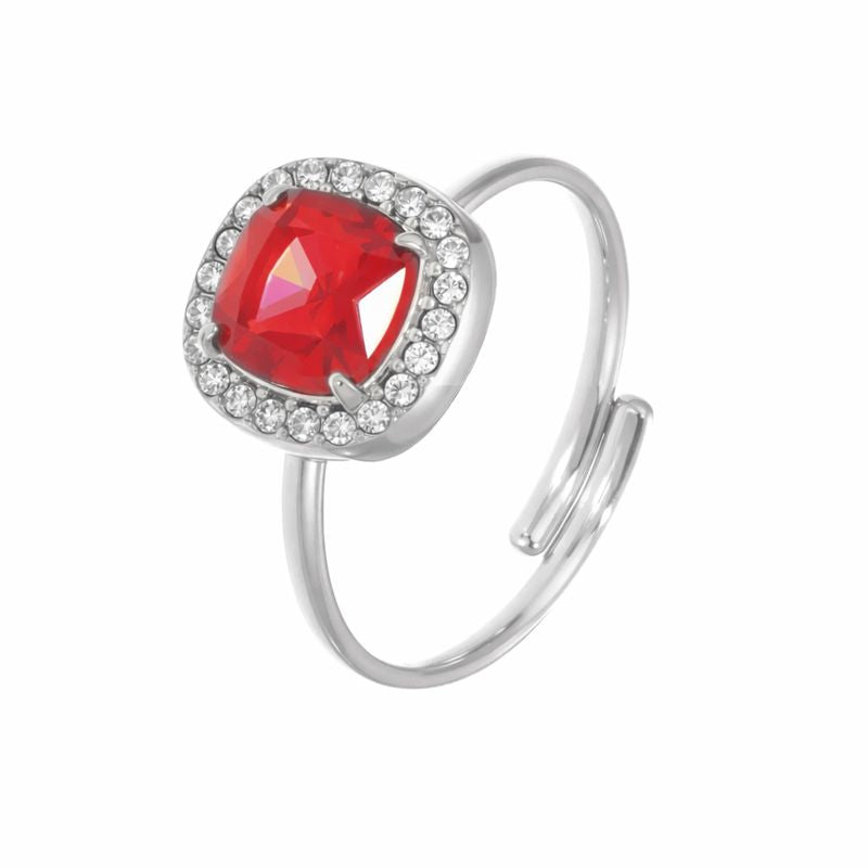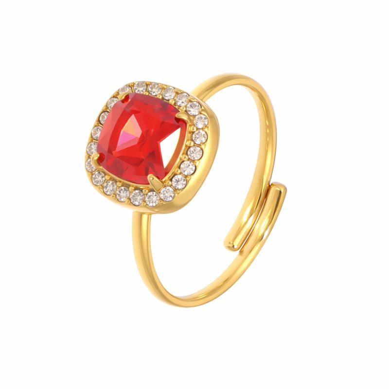Composée d’un collier, d’une bague ajustable et d’une paire de boucles d’oreilles, elle se distingue par son zircon central à la teinte profonde, délicatement entouré d’un halo lumineux.
